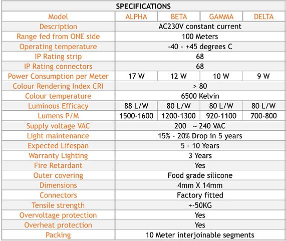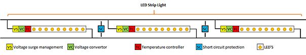 The new designs incorporate cluster management technology, whereas the LEDs are fixed onto PCB boards forming clusters which are then welded together and extruded in a food grade silicone to form the actual strip lighting, these PCB boards are connected in parallel with the electrical circuit working together in synergy as a lighting platform, but independently in the unlikely case of failure, this means if there is a failure on any components of the lighting it would be isolated and not affect the remaining lighting system.
