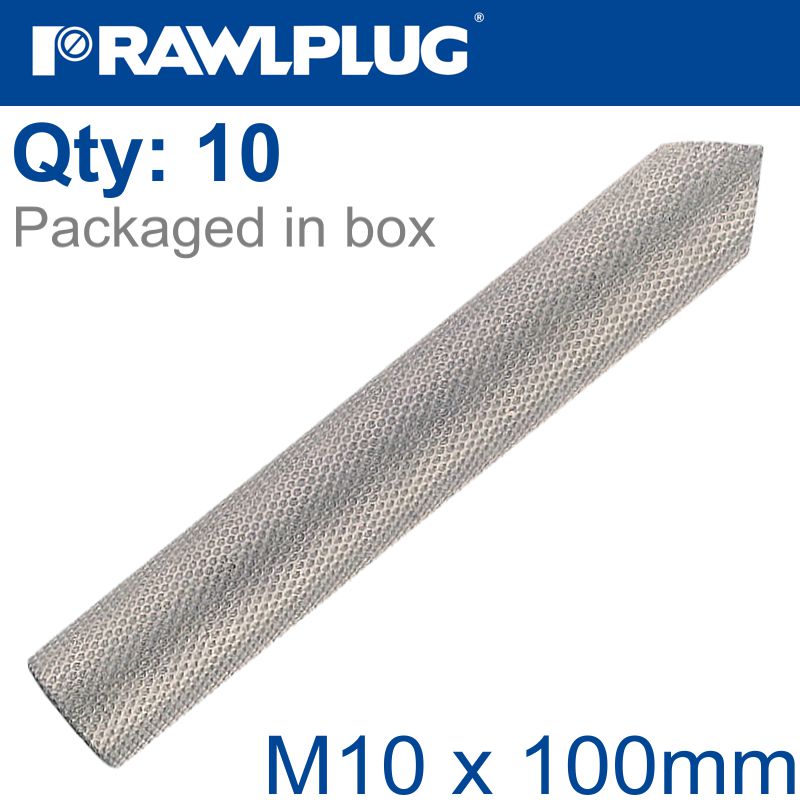 RAWLPLUG INTERNALY THREADED SOCKETS M10X100 ZINC PLATED, CLASS 5.8 BOX OF 10 RAW R-ITS-Z-10100