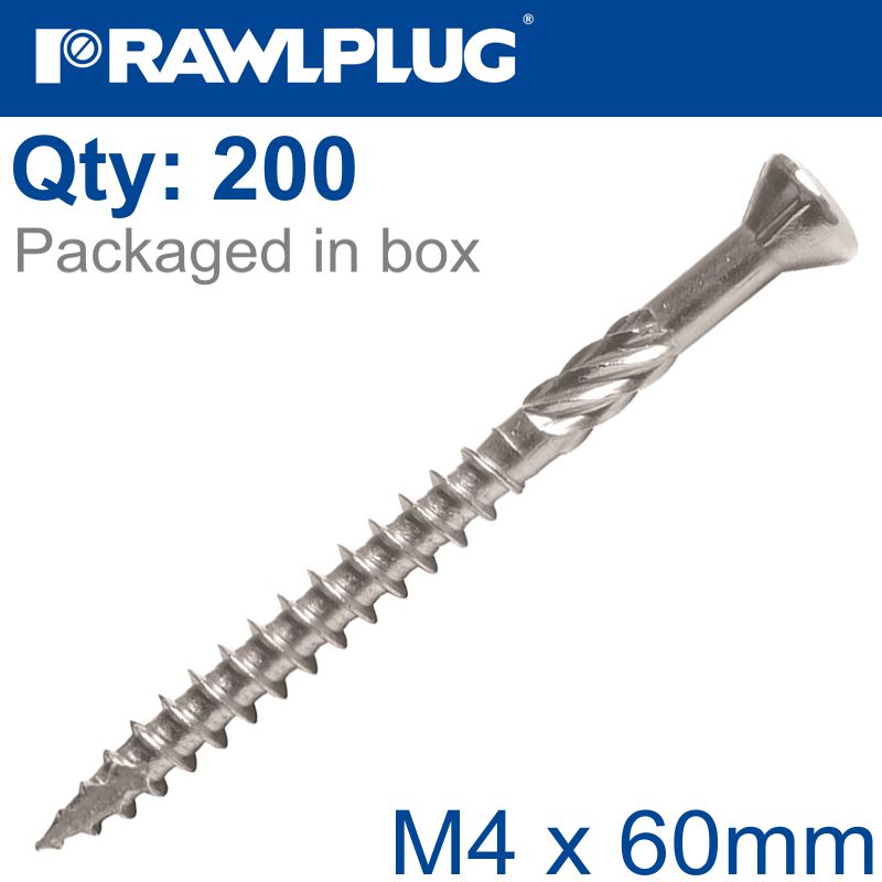 RAWLPLUG R-DSX DECKING SCREWS M4 X 60X36 A2 SS X200-BOX RAW R-DSX-4060-A2