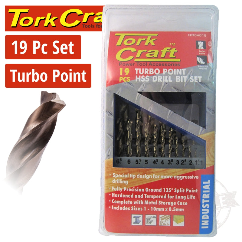 TORK CRAFT DRILL BIT SET 19PCS 1-10MM x 0.5MM TURBO POINT NR04019