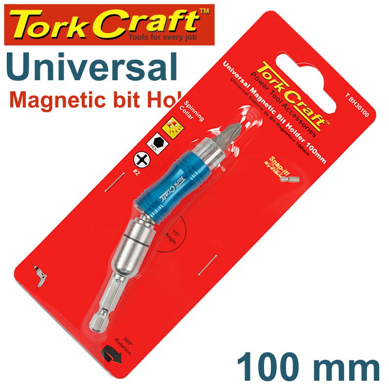 TORK CRAFT MAGNETIC BIT HOLDER 100MM UNIVERSAL CARDED 1/4' HEX T BH30100